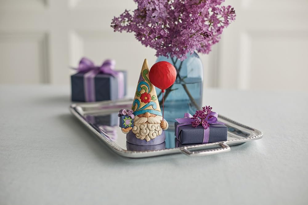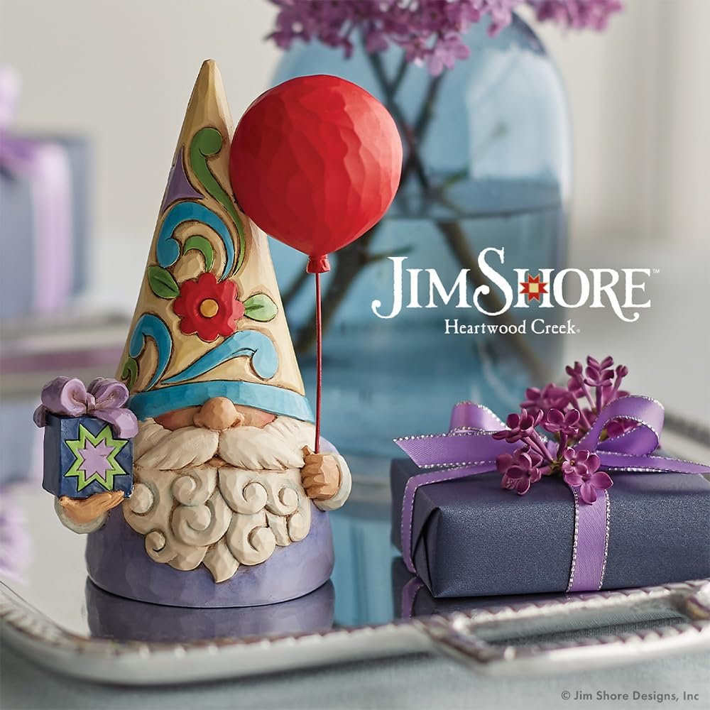 Heartwood Creek by Jim Shore captures the essence of traditional American and European folk art with figurines, statues, and home decor. This celebration gnome with a red balloon and present is the newest addition to the collection. About Us: Enesco is dedicated to bringing joy through high-quality giftware and home decor from brands like Department 56 Village and Disney Traditions by Jim Shore.