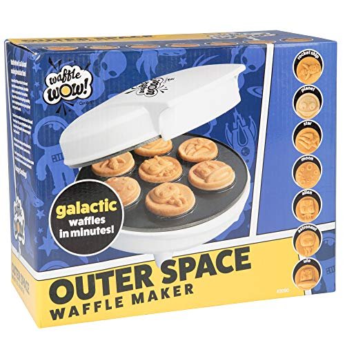Take your waffle game to new heights with rockets, aliens, planets, and more! Fuel creativity every morning with our quality waffler featuring 7 unique designs: rocket ship, planet, alien, UFO, moon, star, and astronaut.