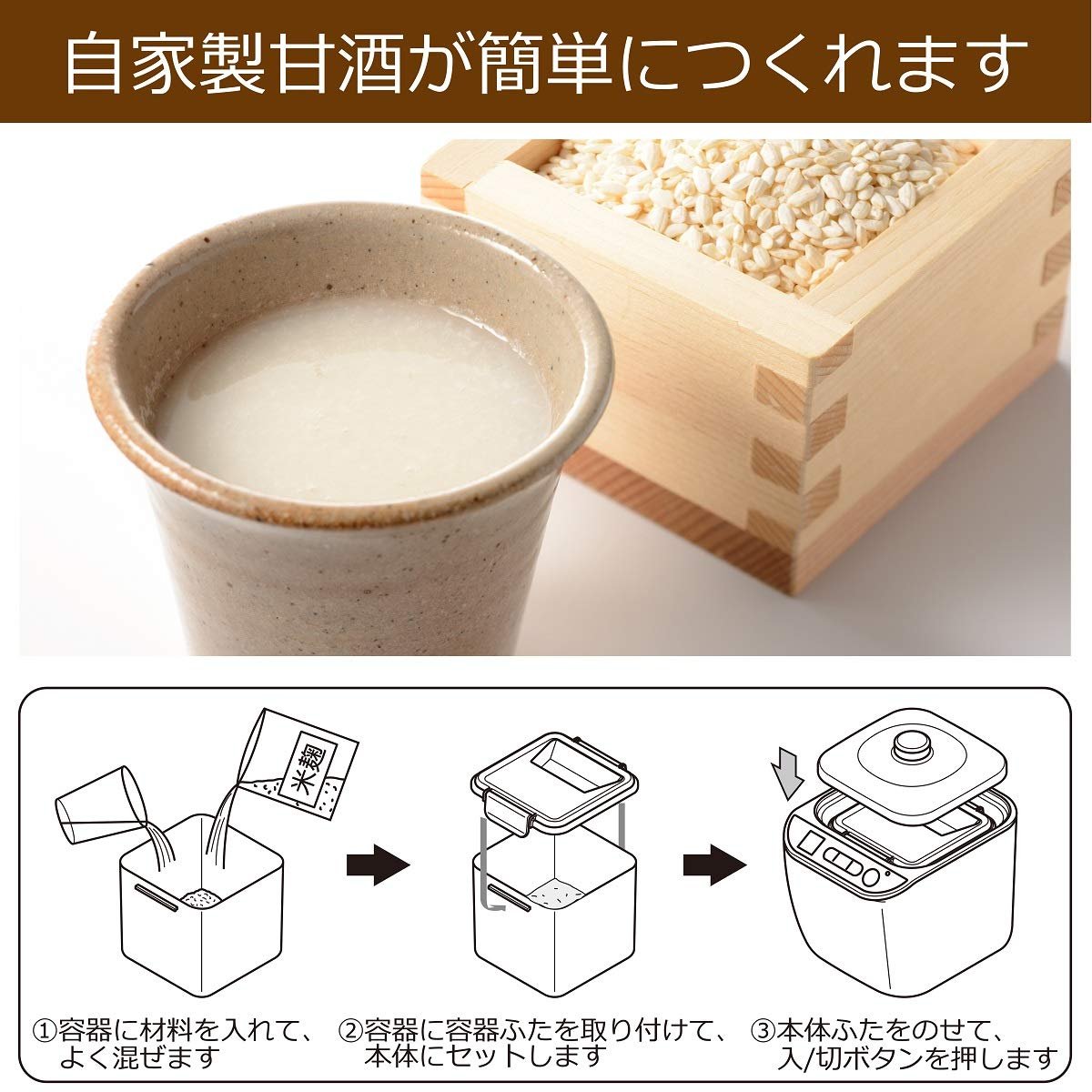 Easy to make homemade sweet sake with the NAKASA AMAZAKE Maker NAM-10L. The 4-sided heating system reduces cooking time, allowing sweetsake to be ready in as little as 6 hours. The easy-to-read control panel and LCD display, along with the buzzer notification for the start and finish of cooking, make brewing a breeze. Set the temperature between 67 – 143°F (25 – 65°C) and the timer from 1 to 48 hours. The container and lid are both easily disinfected with boiling water, ensuring cleanliness. Enjoy making 11 types of fermented foods with this convenient maker.
