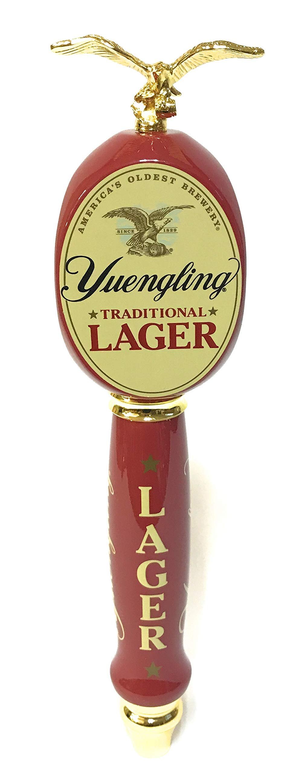 Enhance your bar with the Yuengling Traditional Lager 2018 13″ Tap Handle featuring a striking gold eagle topper. Elevate your pour experience with this quality-crafted essential.